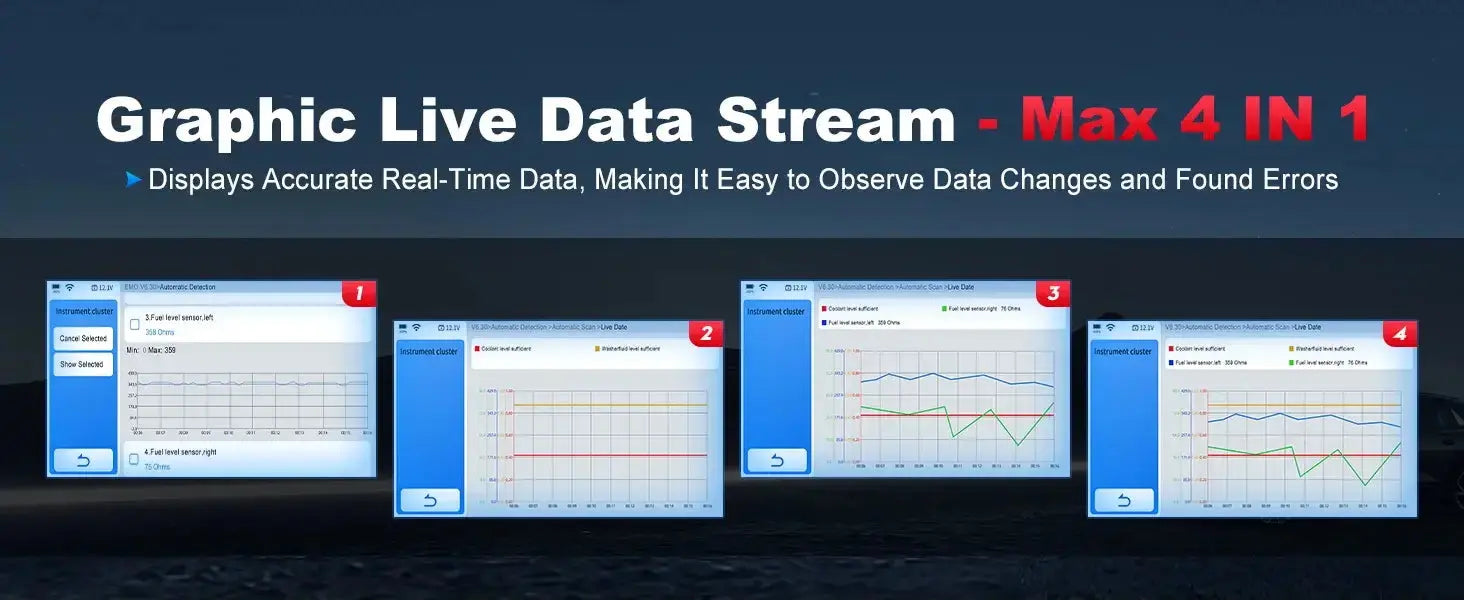 - 4-in-1 realaus laiko duomenų grafikas