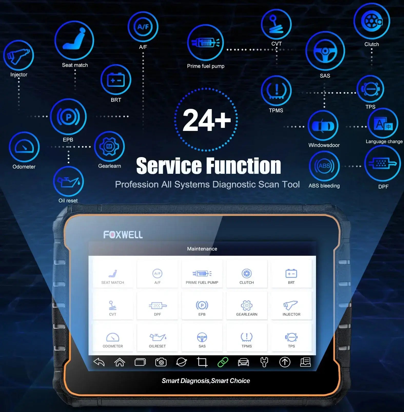 - 24+ servisiniai nustatymai: alyvos aptarnavimo nustatymas, ABS nustatymas, SAS kalibravimas, TPMS nustatymas, DPF regeneracija, EPB nustatymas, baterijos registracija ir kt.