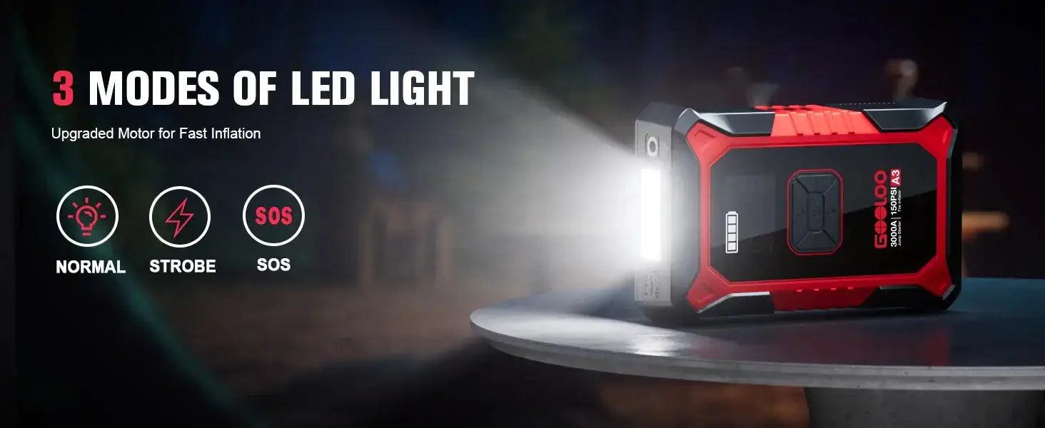 GOOLOO A3 – Professional 3000A Jump Starter with Integrated Air Compressor