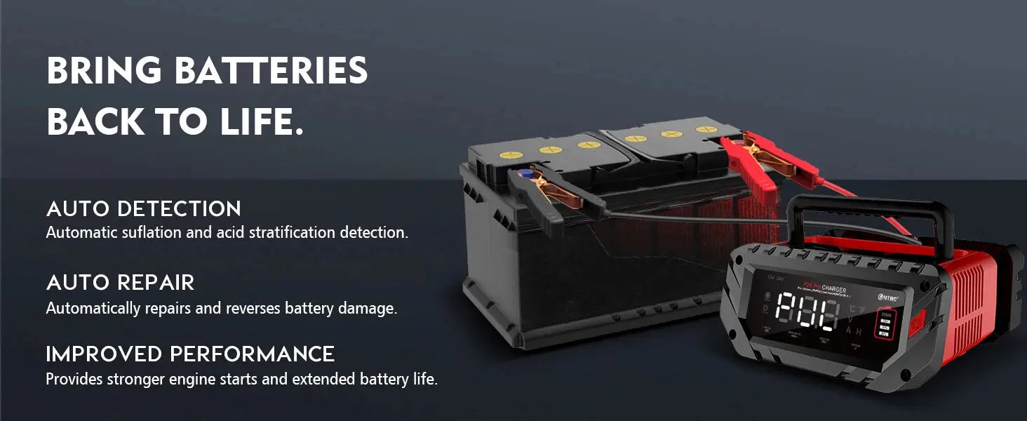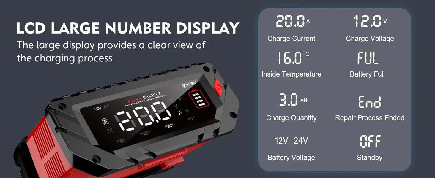 - Automatinis atpažinimas: Automatiškai nustato 12V arba 24V akumuliatorių