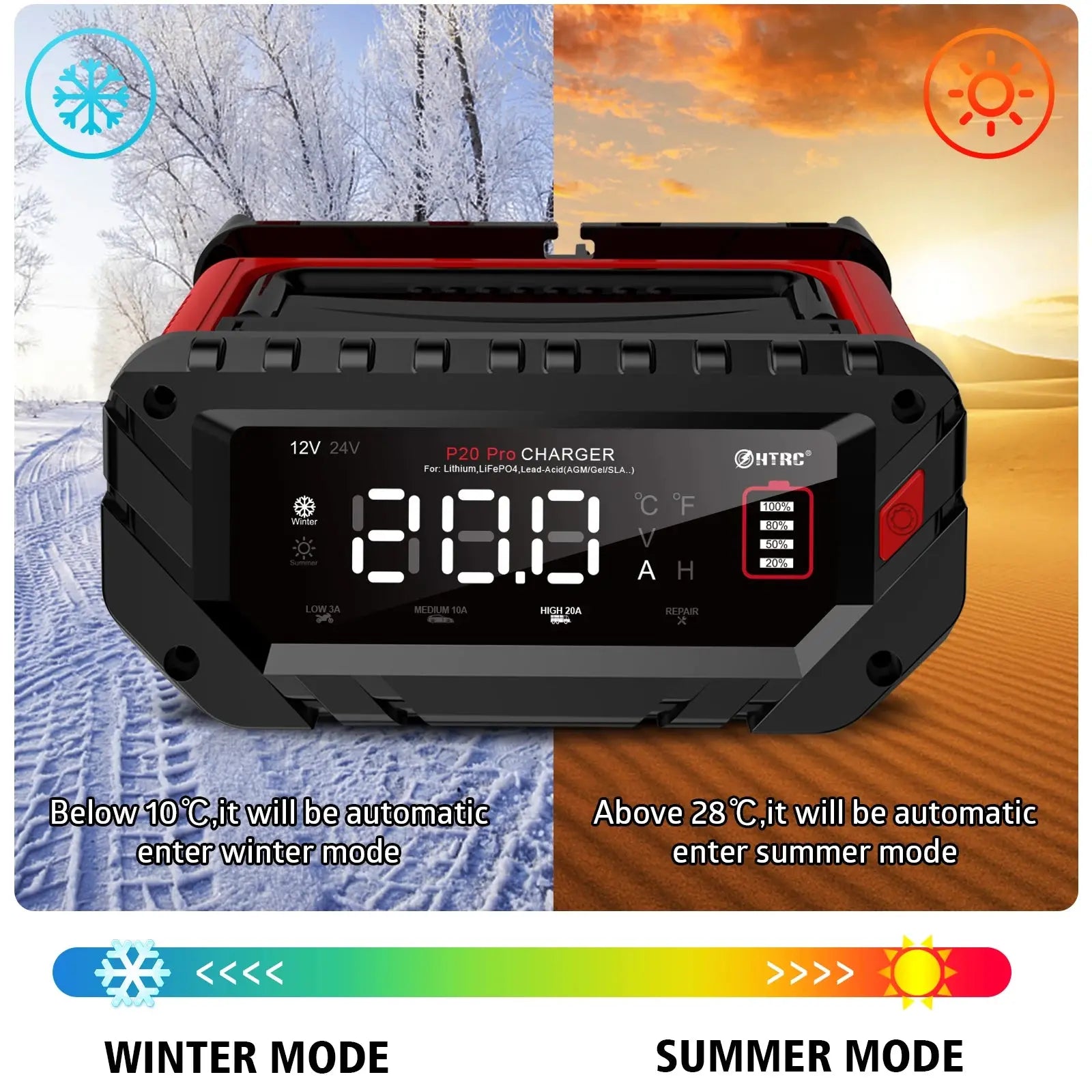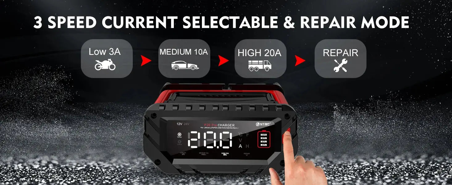 HTRC 20A Pro – tai pažangus, daugiafunkcis akumuliatorių įkroviklis ir priežiūros įrenginys, skirtas įvairiems transporto priemonių tipams. Šis profesionalus įkroviklis užtikrina optimalų akumuliatorių įkrovimą ir ilgaamžiškumą.